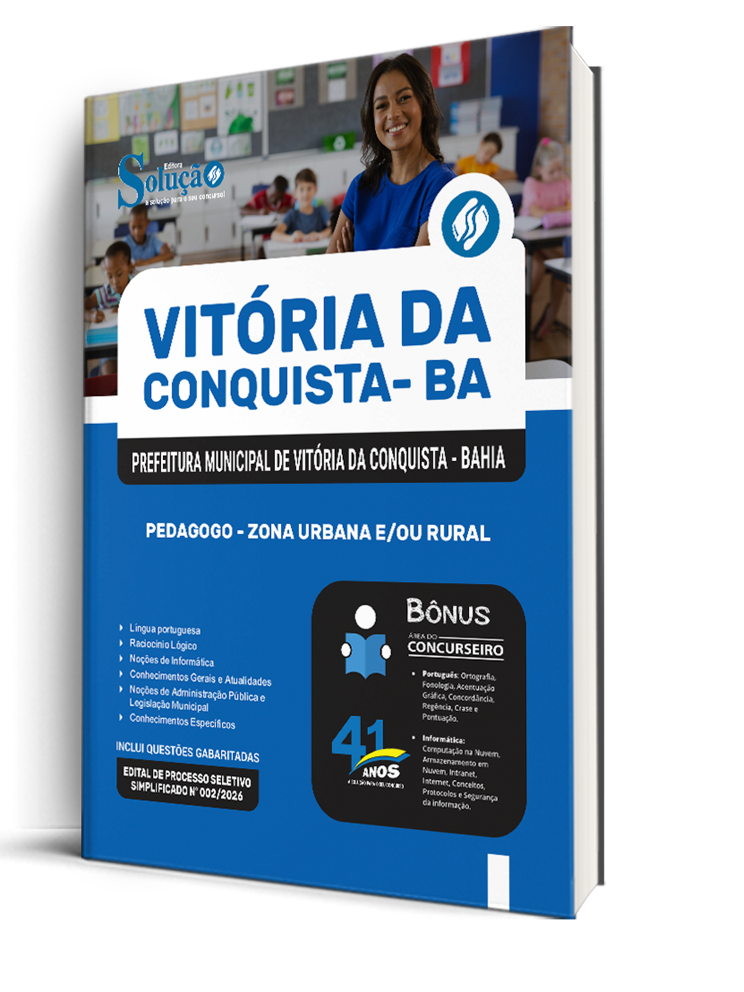 - Apostila Prefeitura de Vitória da Conquista - BA 2026 - Pedagogo - Zona Urbana e/ou Rural: traz toda a teoria necessária de forma escrita e com exercícios; de acordo com o último edital e elaborado por nossa equipe de professores especializados em concursos.