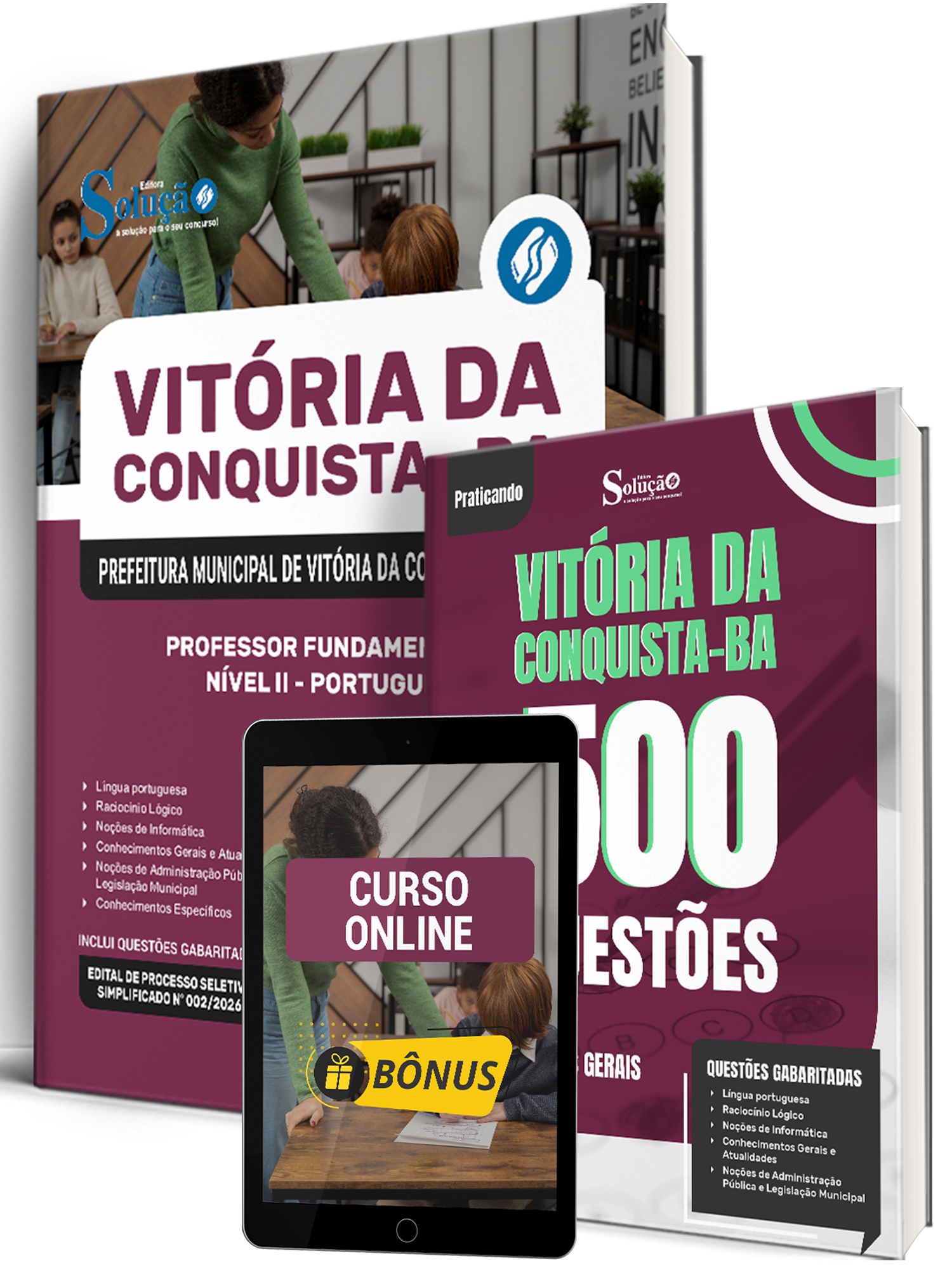 - Caderno de Questões Prefeitura de Vitória da Conquista - BA - Conhecimentos Gerais - 500 Questões Gabaritadas: traz questões cuidadosamente selecionadas pela nossa equipe editorial, de acordo com o edital mais recente do concurso.