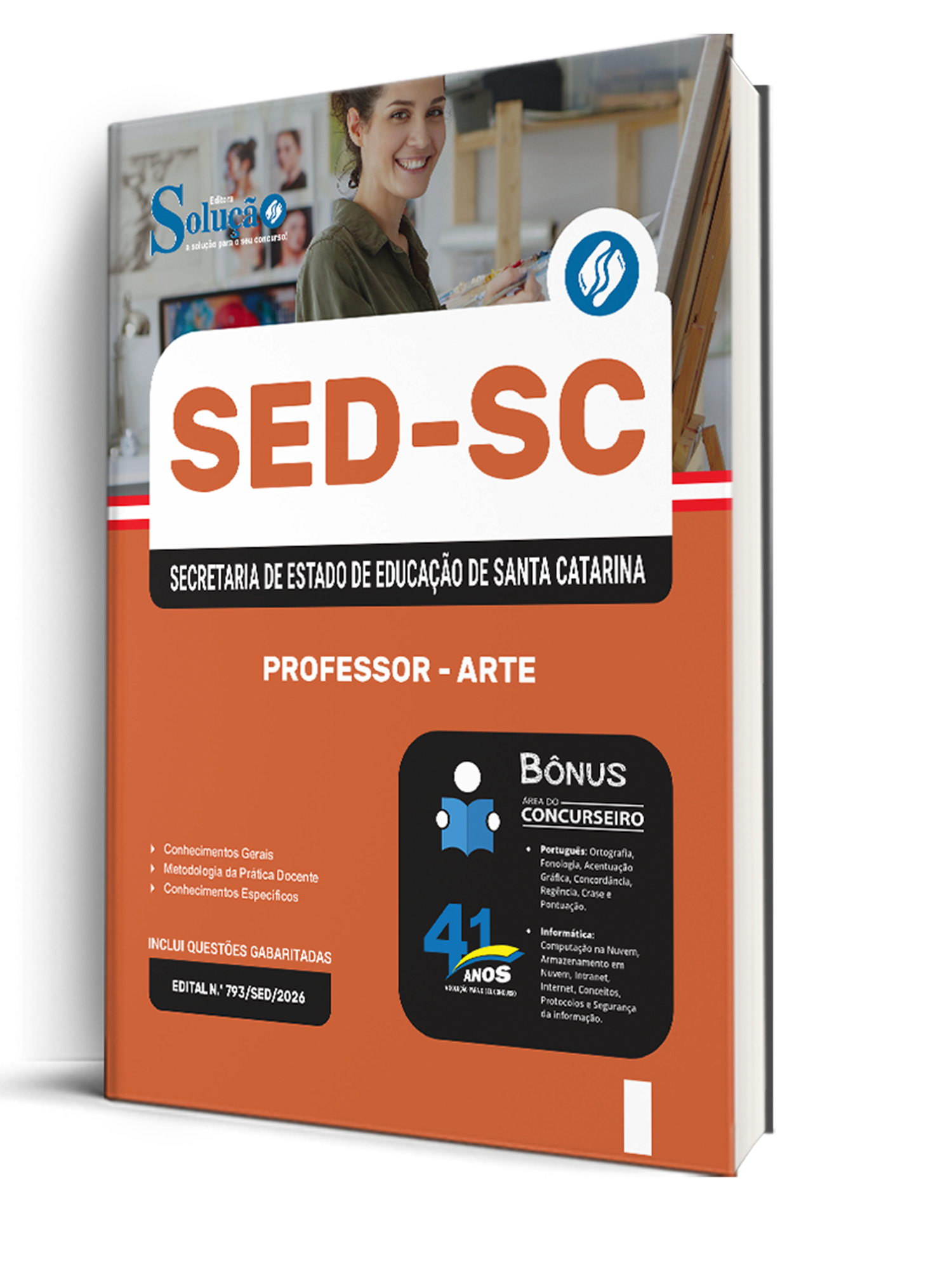 - Apostila SED-SC 2026 - Professor - Artes: traz toda a teoria necessária de forma escrita e com exercícios; de acordo com o último edital e elaborado por nossa equipe de professores especializados em concursos.