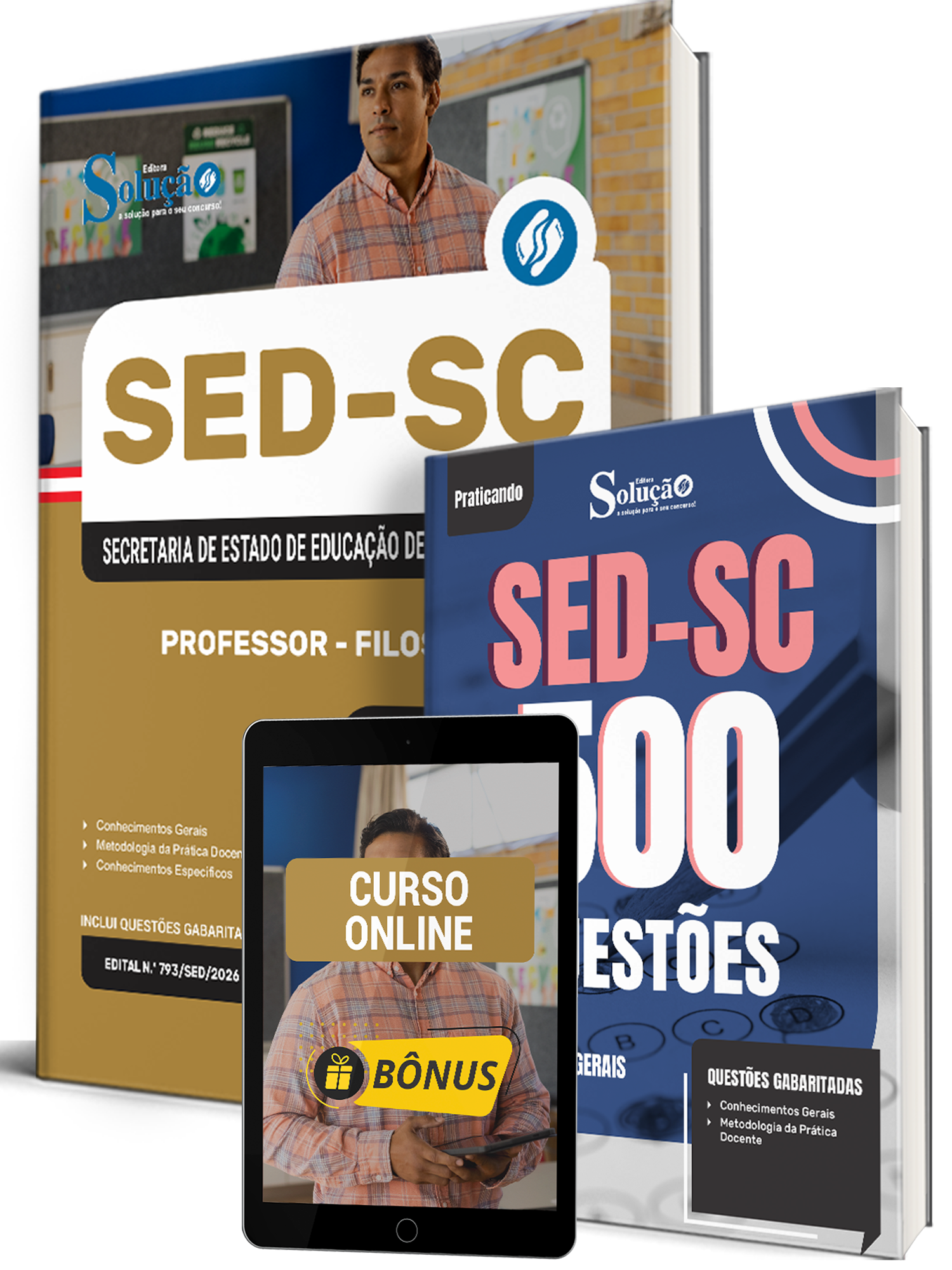 - Apostila SED-SC 2026 - Professor - Filosofia: traz toda a teoria necessária de forma escrita e com exercícios; de acordo com o último edital e elaborado por nossa equipe de professores especializados em concursos.