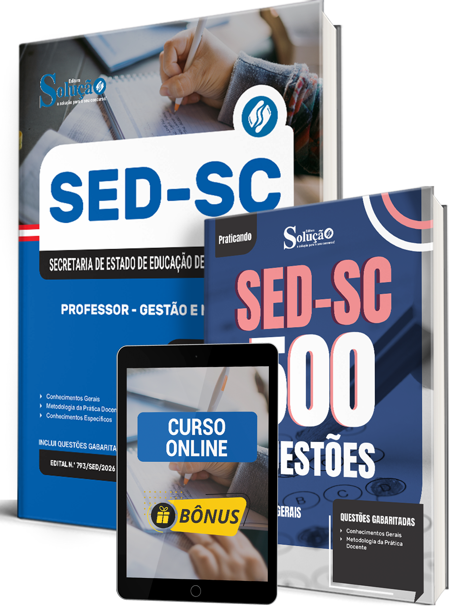 - Caderno de Questões SED-SC - Conhecimentos Gerais - 500 Questões Gabaritadas: traz questões cuidadosamente selecionadas pela nossa equipe editorial, de acordo com o edital mais recente do concurso.