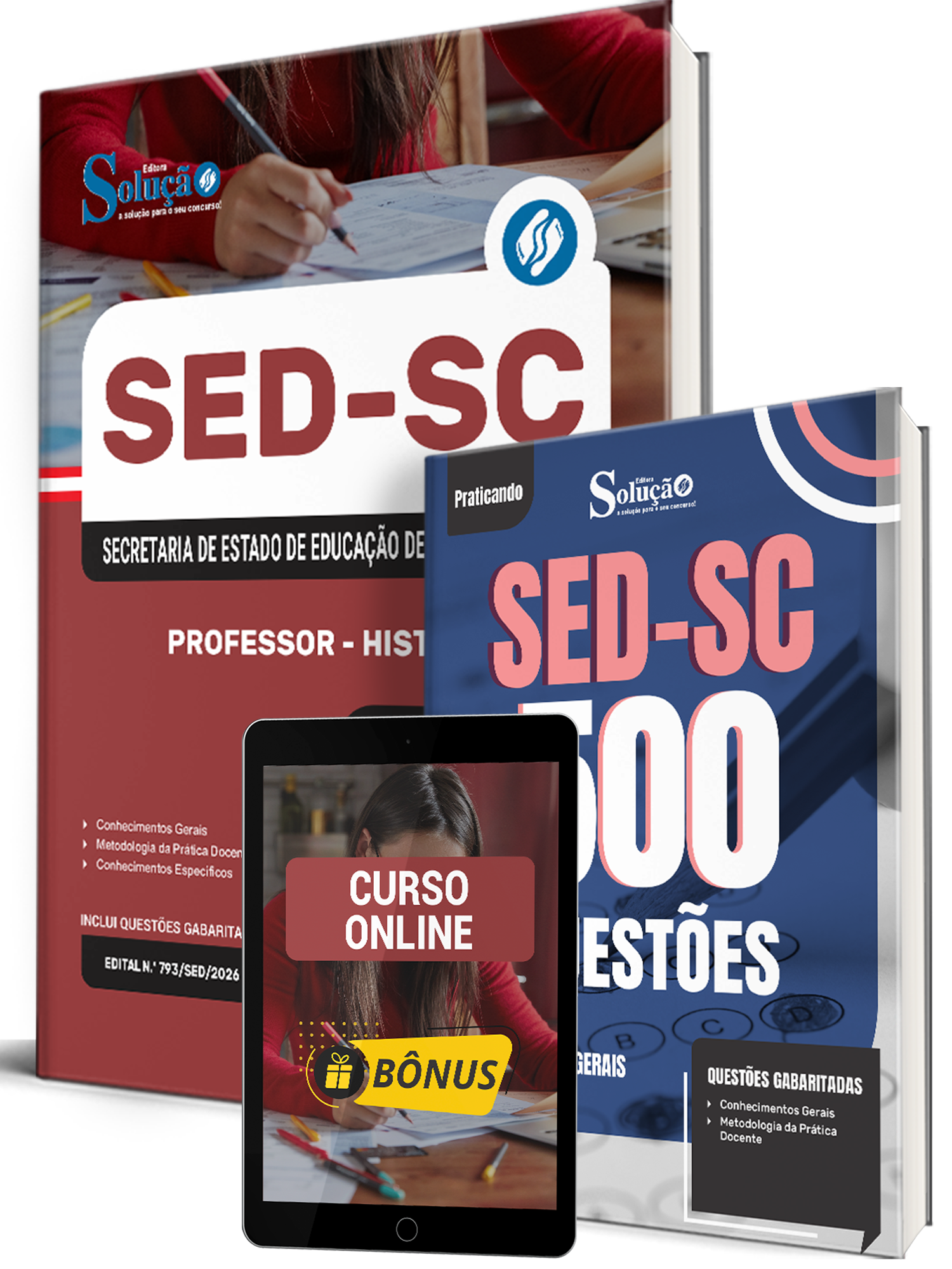 - Caderno de Questões SED-SC - Conhecimentos Gerais - 500 Questões Gabaritadas: traz questões cuidadosamente selecionadas pela nossa equipe editorial, de acordo com o edital mais recente do concurso.