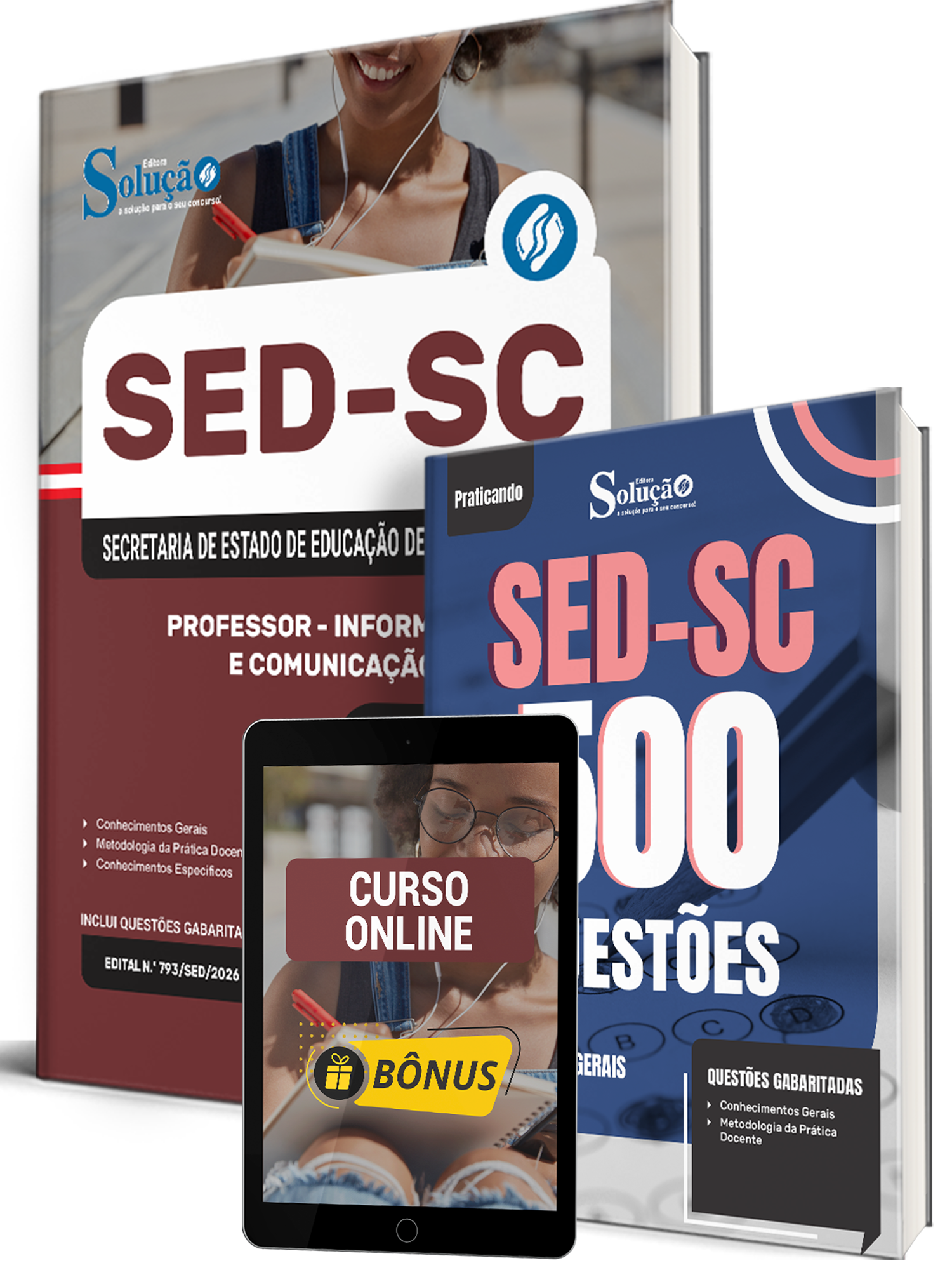 - Apostila SED-SC 2026 - Professor - Informação e Comunicação: traz toda a teoria necessária de forma escrita e com exercícios; de acordo com o último edital e elaborado por nossa equipe de professores especializados em concursos.
