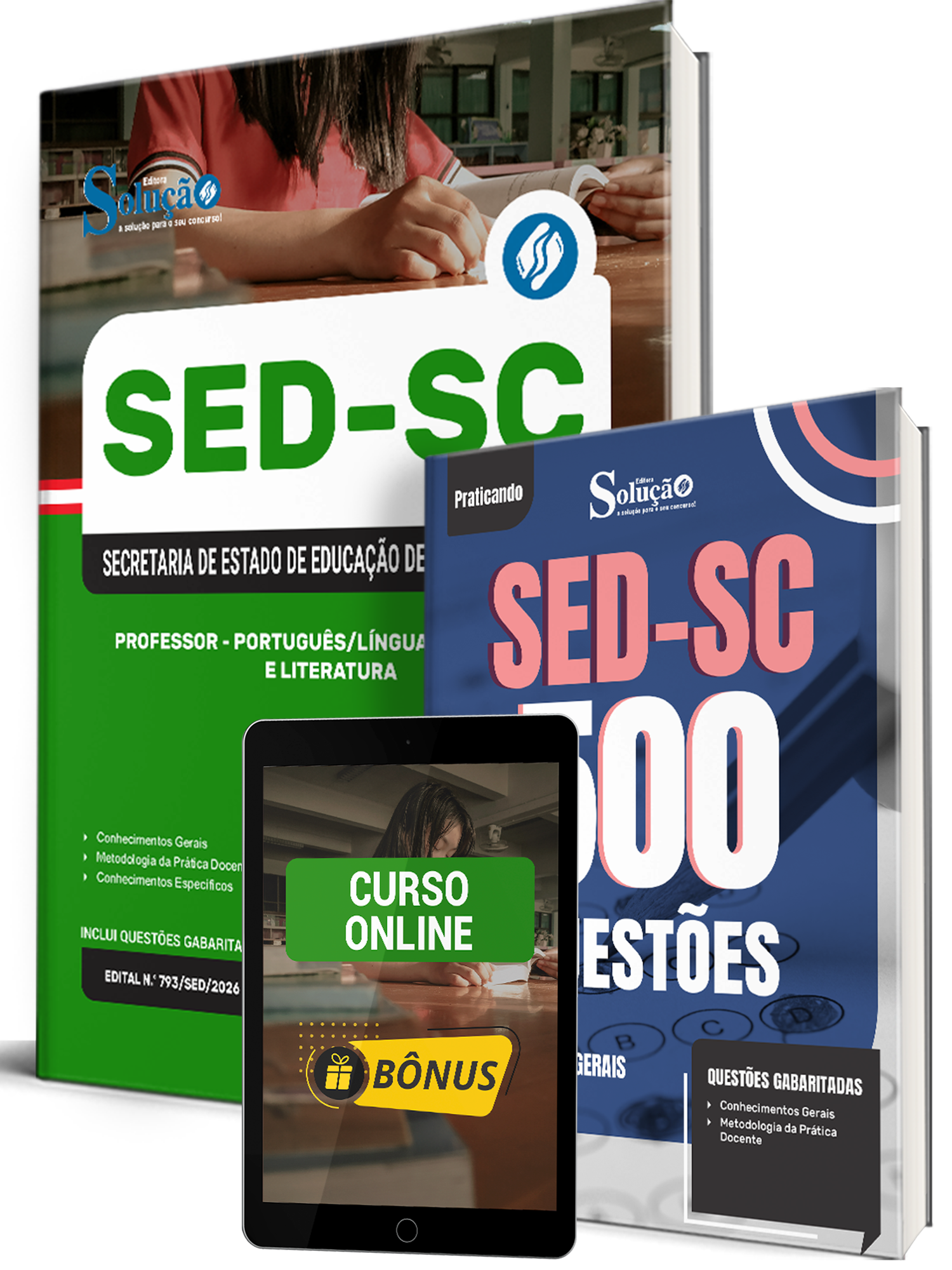 - Caderno de Questões SED-SC - Conhecimentos Gerais - 500 Questões Gabaritadas: traz questões cuidadosamente selecionadas pela nossa equipe editorial, de acordo com o edital mais recente do concurso.
