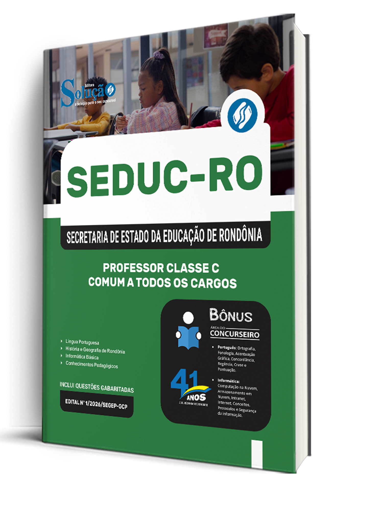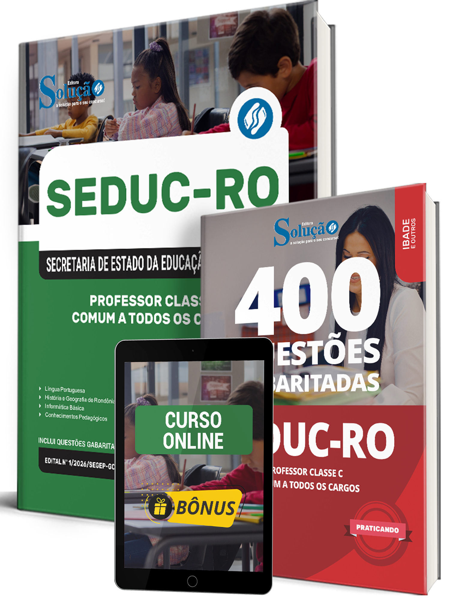- Apostila SEDUC-RO 2026 - Comum a Todos os Cargos: traz toda a teoria necessária de forma escrita e com exercícios; de acordo com o último edital e elaborado por nossa equipe de professores especializados em concursos.