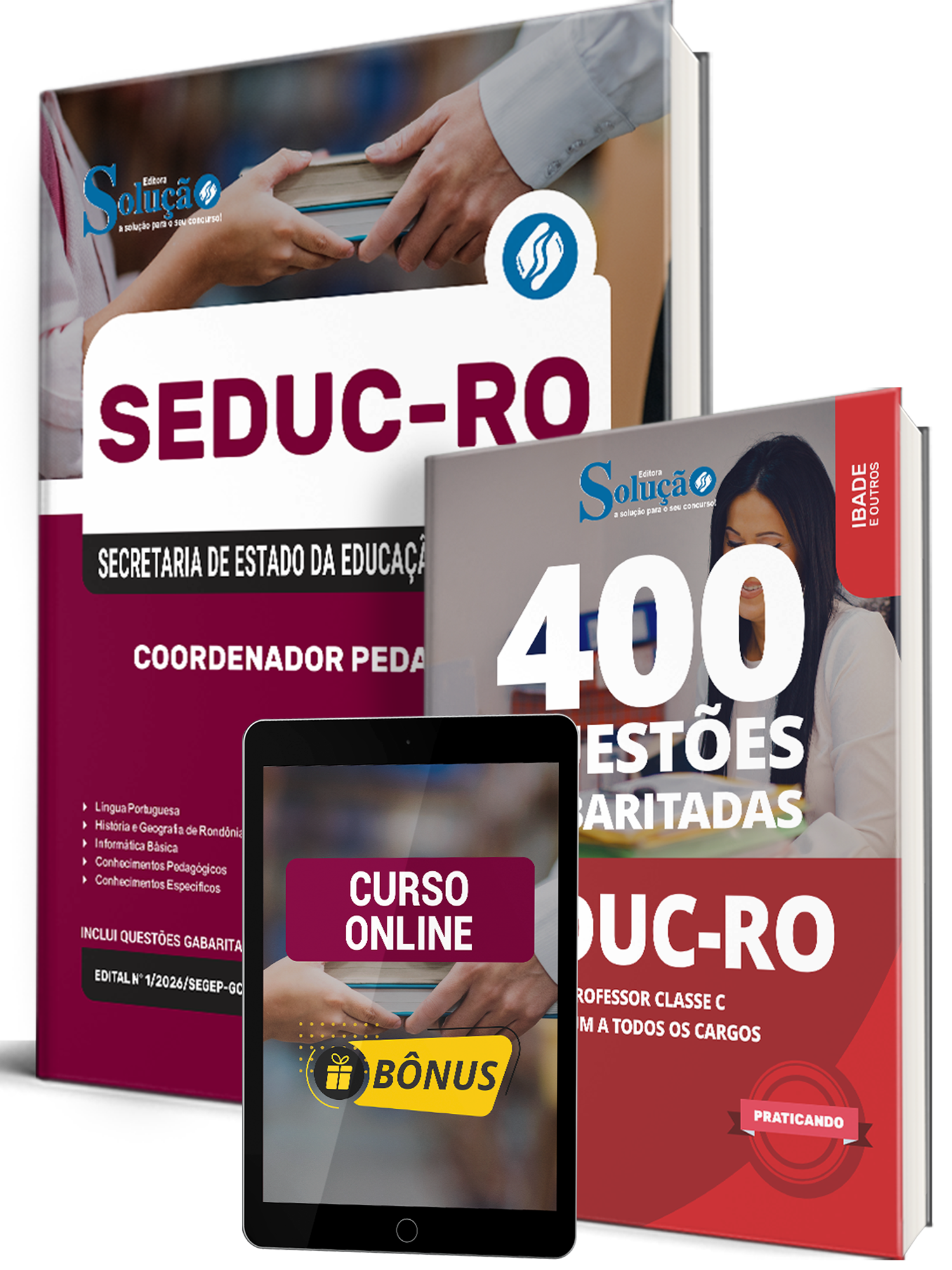 - Apostila SEDUC-RO 2026 - Coordenador Pedagógico (Supervisor): traz toda a teoria necessária de forma escrita e com exercícios; de acordo com o último edital e elaborado por nossa equipe de professores especializados em concursos.