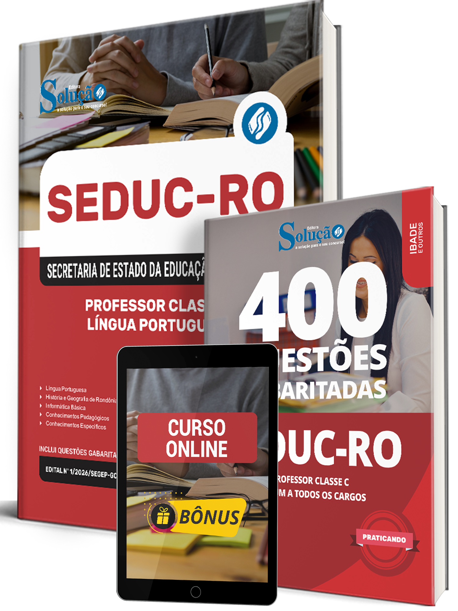 Materiais que compõem o Combo SEDUC-RO 2026 - Professor Classe C - Língua Portuguesa: