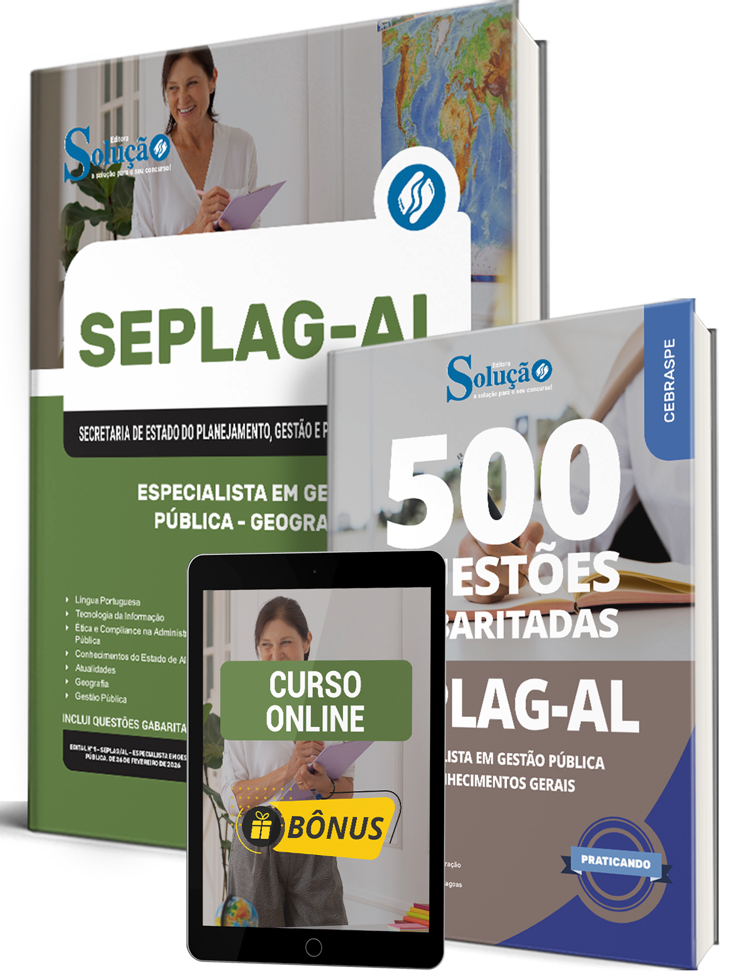 - Apostila SEPLAG-AL 2026 - Geografia: traz toda a teoria necessária de forma escrita e com exercícios; de acordo com o último edital e elaborado por nossa equipe de professores especializados em concursos.