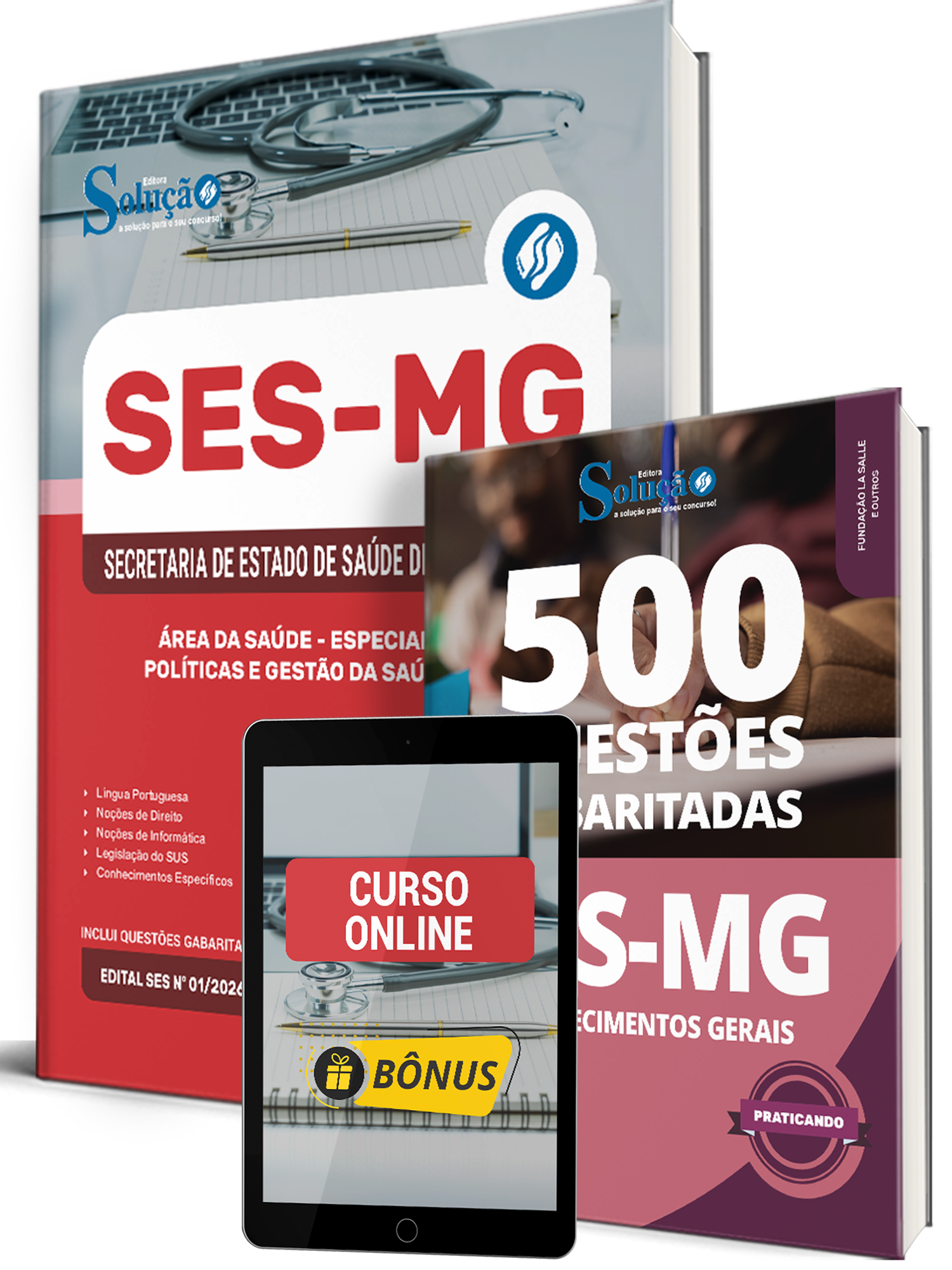 - Caderno de Questões SES-MG - Conhecimentos Gerais - 500 Questões Gabaritadas: traz questões cuidadosamente selecionadas pela nossa equipe editorial, de acordo com o edital mais recente do concurso.