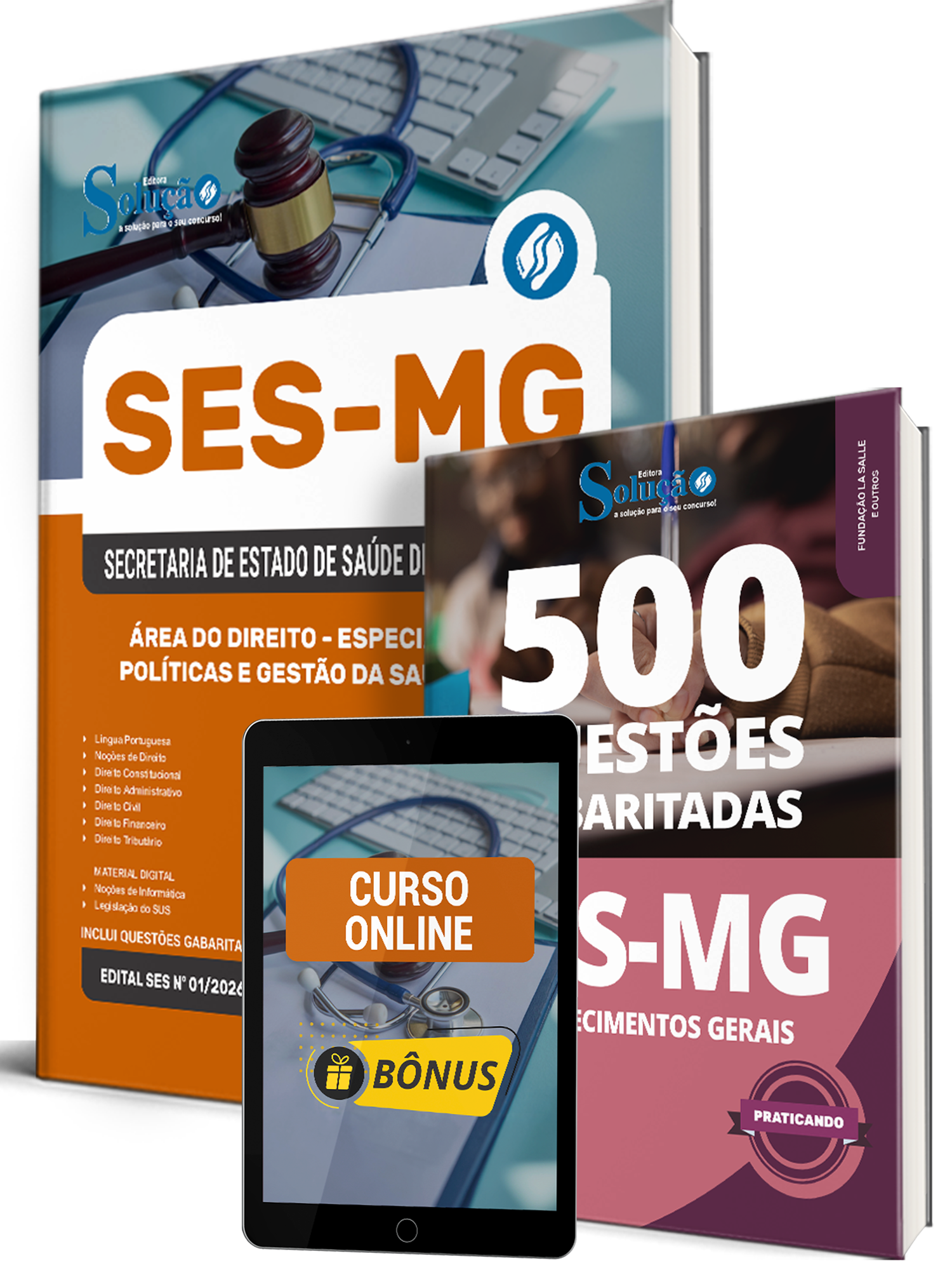 Materiais que compõem o Combo SES-MG 2026 - Especialista em Políticas e Gestão da Saúde (EPGS) - Área do Direito: