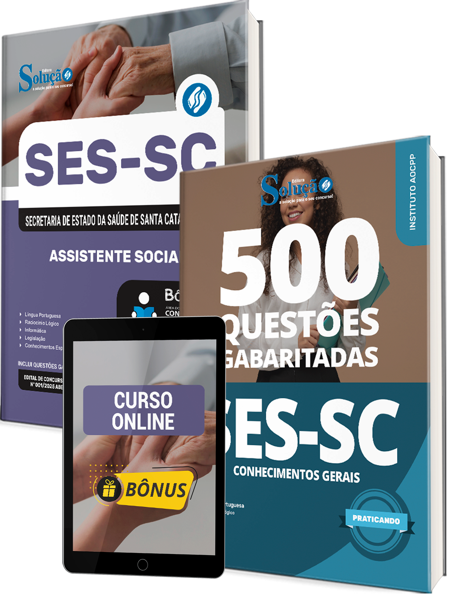 - Apostila SES-SC 2025 - Assistente Social: traz toda a teoria necessária de forma escrita e com exercícios; de acordo com o último edital e elaborado por nossa equipe de professores especializados em concursos.