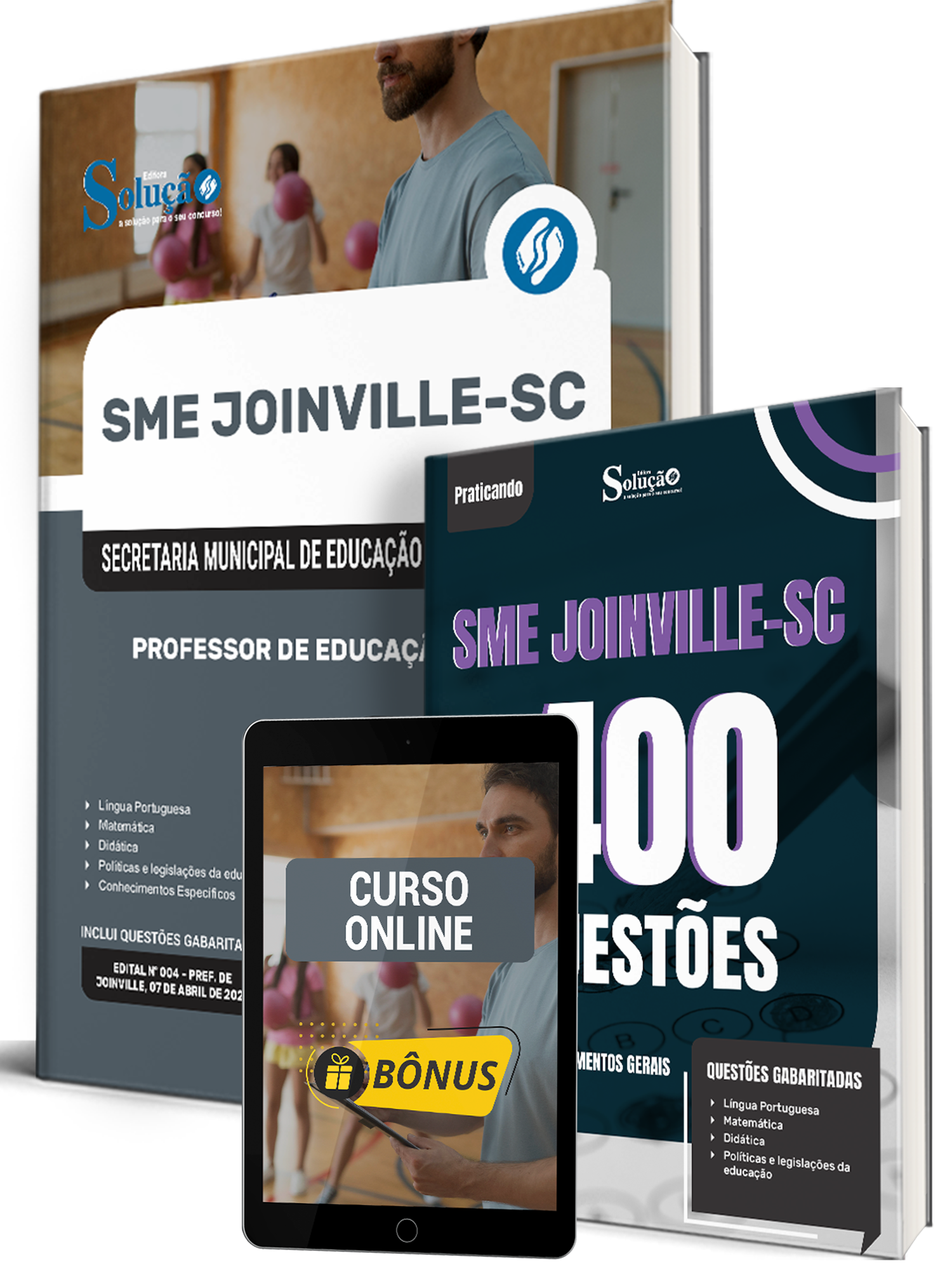 - Apostila SME Joinville-SC 2026 - Professor de Educação Física: traz toda a teoria necessária de forma escrita e com exercícios; de acordo com o último edital e elaborado por nossa equipe de professores especializados em concursos.