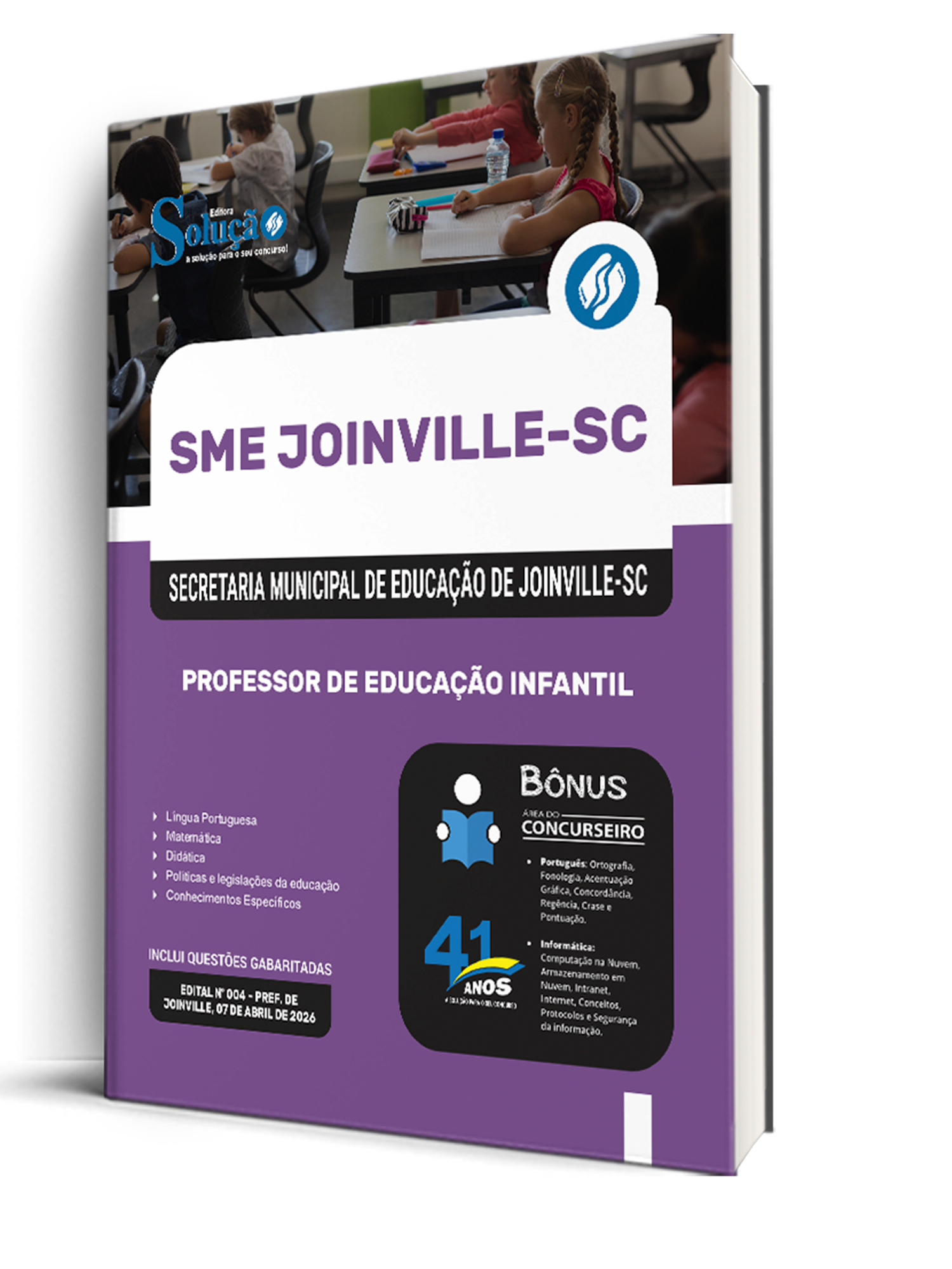 - Apostila SME Joinville-SC 2026 - Professor de Educação Infantil: traz toda a teoria necessária de forma escrita e com exercícios; de acordo com o último edital e elaborado por nossa equipe de professores especializados em concursos.