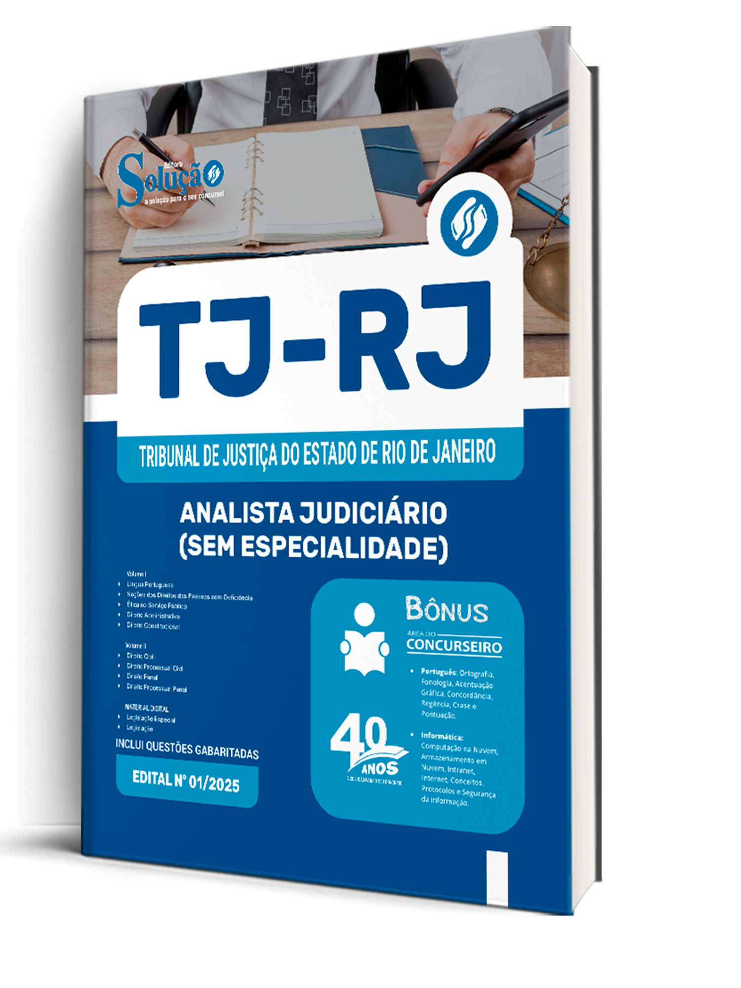 - Apostila TJ-RJ 2025 - Analista Judiciário (sem especialidade): traz toda a teoria necessária de forma escrita e com exercícios; de acordo com o último edital e elaborado por nossa equipe de professores especializados em concursos.