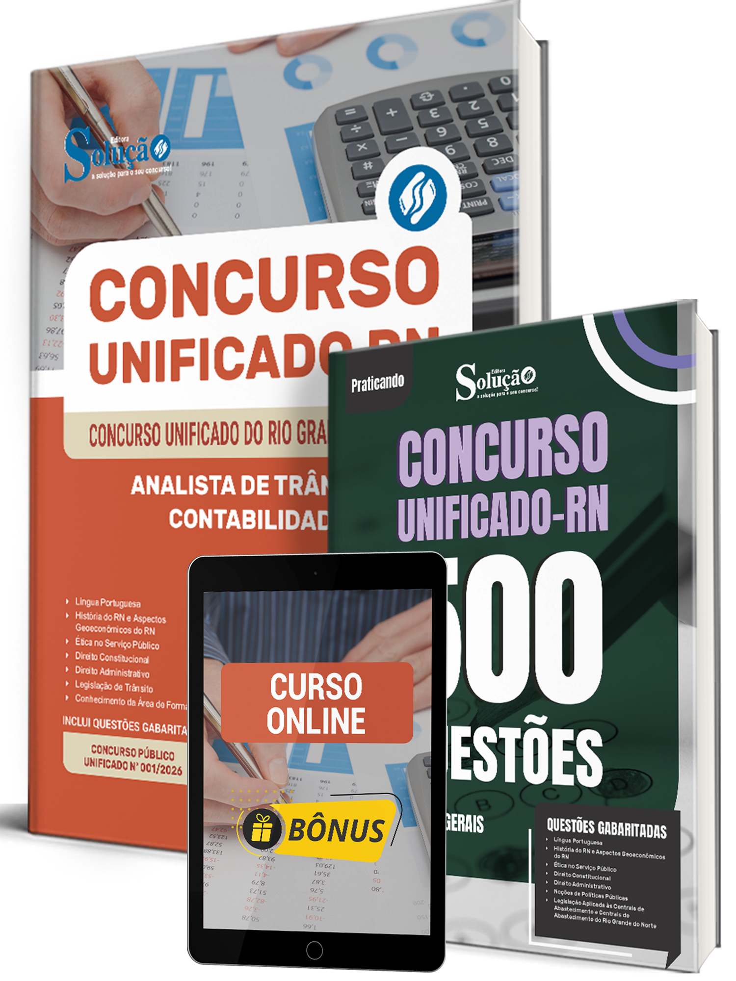 Materiais que compõem o Combo Unificado RN 2026 - Analista de Trânsito - Contabilidade: