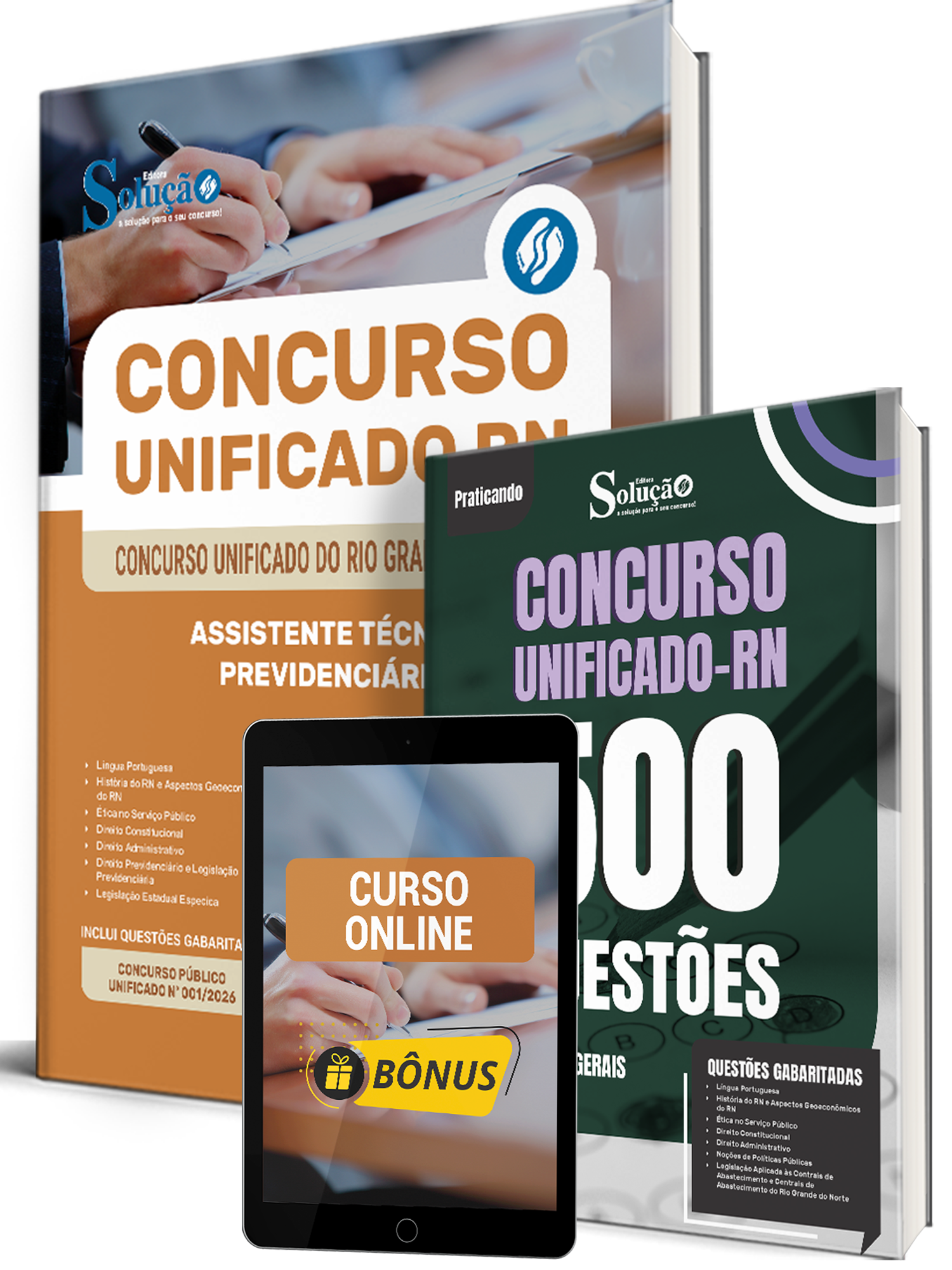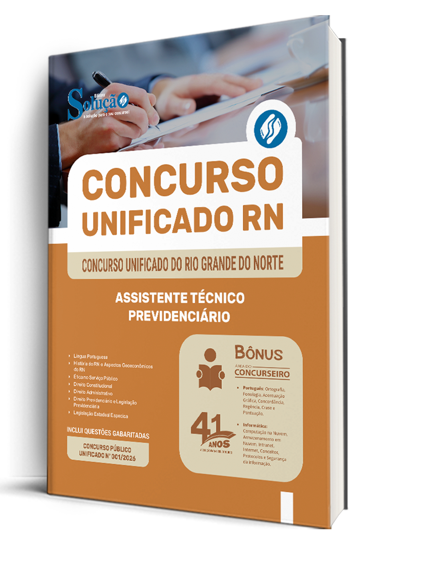 - Apostila Unificado RN 2026 - Assistente Técnico Previdenciário: traz toda a teoria necessária de forma escrita e com exercícios; de acordo com o último edital e elaborado por nossa equipe de professores especializados em concursos.